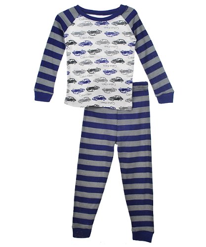 pajamas Calvin Klein Baby-Boys Infant Cars and Stripe Allover Print Pajama Set, Blue, 18 Months
